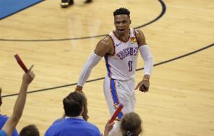 还得看你!威少快速突击 左手拉杆轻松上篮!