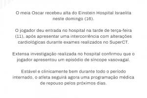 体育资讯11月16日讯 一度昏厥失去意识2分钟!圣保罗官方:奥斯卡已经出院,情况良好
